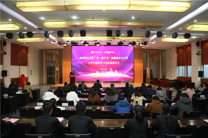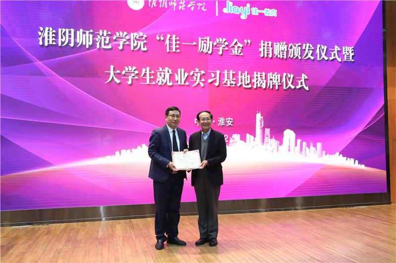图为淮师举行“佳一励学金”捐赠颁发仪式暨大学生就业实习基地揭牌仪式。 记者 唐瑀 摄