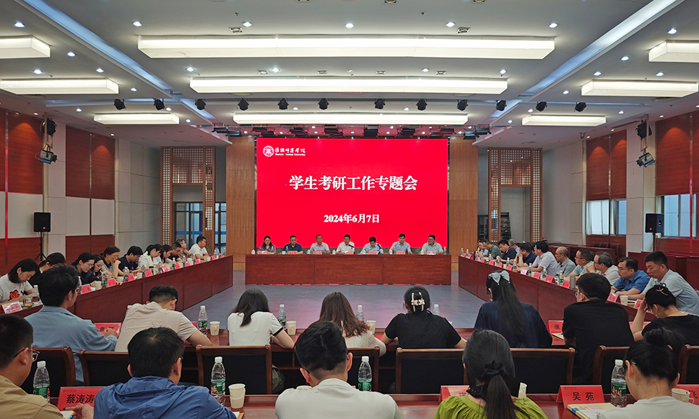 学生处处长王管从2024届毕业生考研的总体情况、推进的主要措施和存在不足、推进2021级学生考研工作的思路等三个方面作了总结分析。研究生处处长陈贵宾作考研政策解读与专项动员。