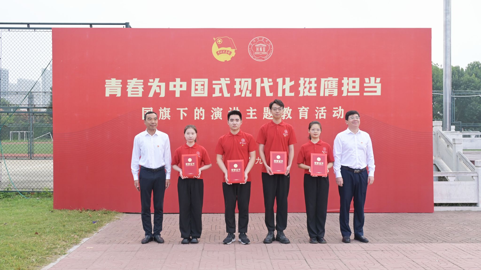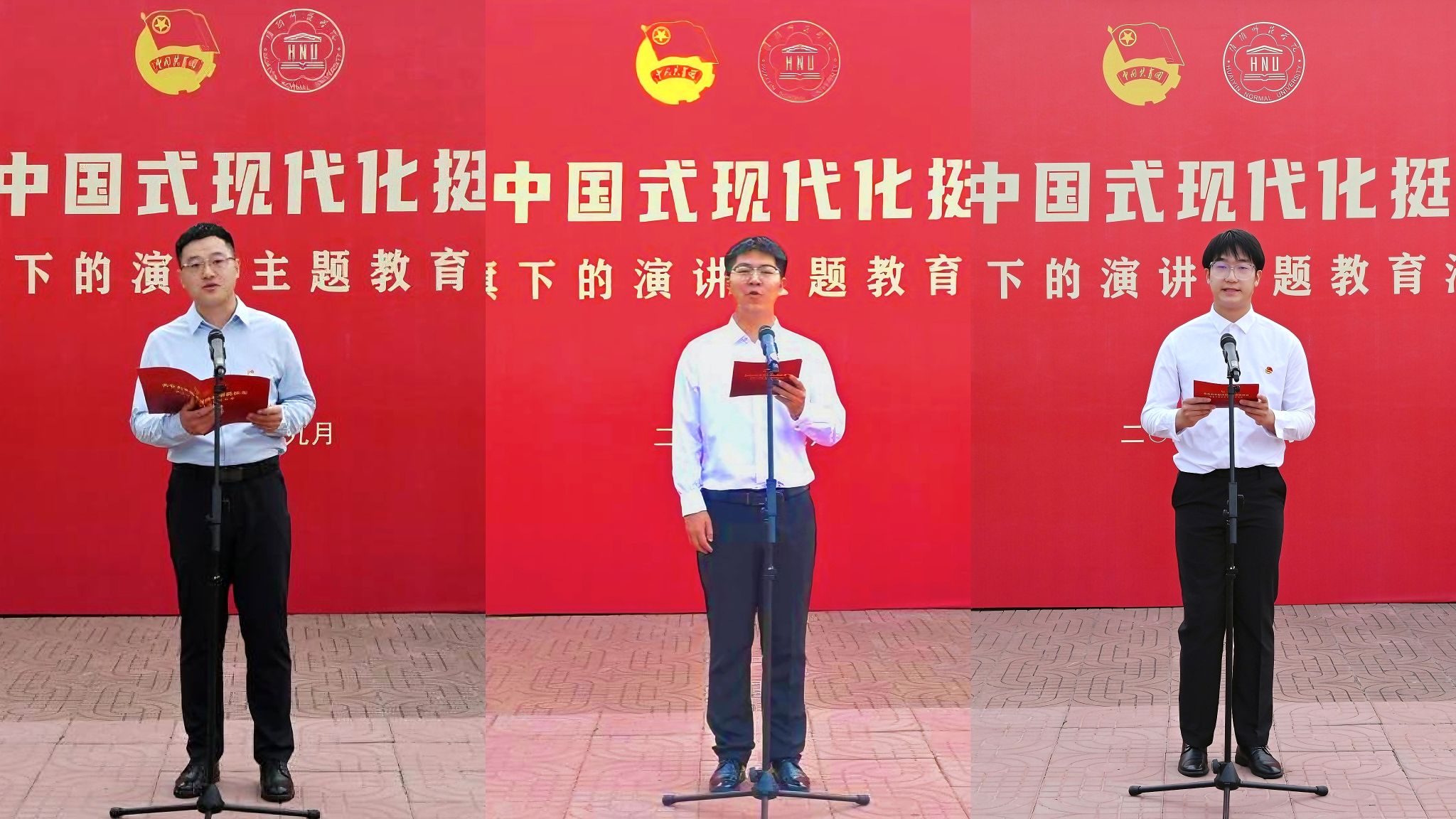 教师代表严玉波用“目标、坚持、担当”三个关键词与同学们分享自己与祖国共奋进的故事。他号召全体青年朋友们秉承坚定的信念,勇敢迎接未来的挑战,用拼搏与智慧,为祖国的繁荣富强贡献力量。文学院学科教学语文2301班韩昊表示,作为一名硕士研究生,要在学术研究中,敢于探索、勇于创新,不断提高自身素质,为祖国的科技进步和创新发展作出自己的努力。计算机科学与技术学院2106班顾许钦,表达了当代大学生要“与祖国同心同德”“与祖国同心同向”“与祖国同心同行”的决心和信念。他号召全校团员青年,用青春告白祖国,在推进强国建设、民族复兴伟业中展现青春作为、彰显青春风采、贡献青春力量。