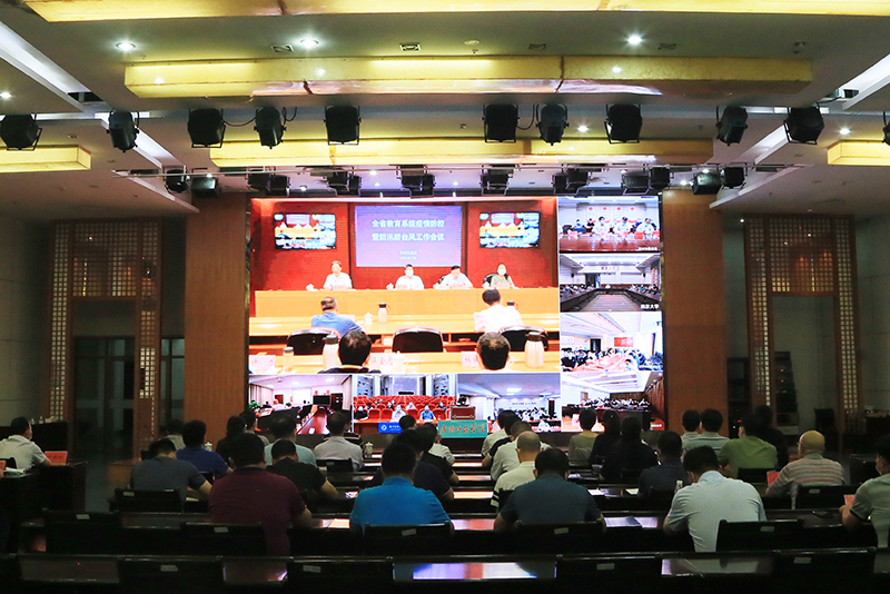 图为淮师组织参加全省教育系统疫情防控暨防汛防台风工作视频会议。记者 唐瑀 摄