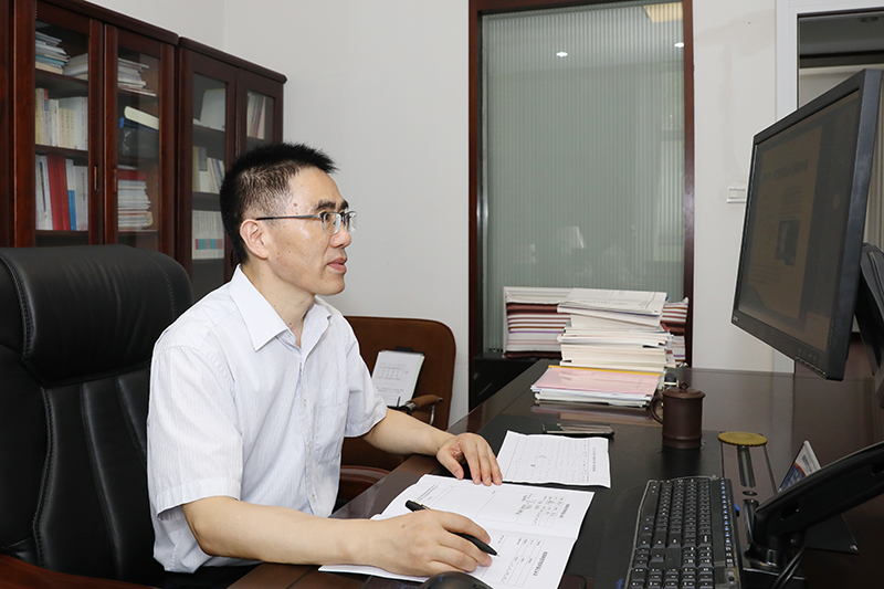图为副校长施军在线聆听“开学第一课”。记者 唐瑀 摄