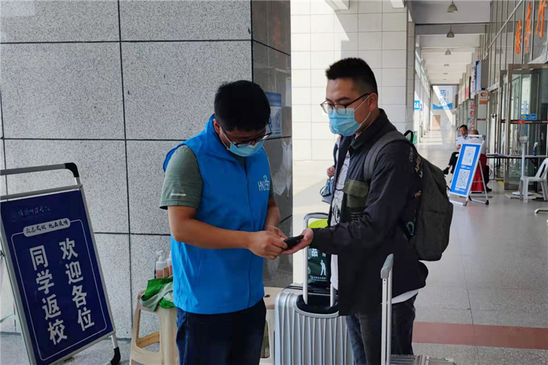 返校当日,学校各部门、各单位协同配合,群策群力,联防联控,合力推进学生返校工作。学校保卫部门组织精干力量,明确工作职责,坚守岗位。机关党委将助力学生返校疫情防控工作,作为践行“两在两同”建新功行动的实际举措,并动员和组织了50余名教职工党员志愿者在各校门口对入校同学进行信息核查、体温测量、材料收取等,勇做疫情防控“服务先锋”。学生处、各二级学院辅导员老师报到现场热情接待,并协助安排校园车辆帮助学生搬运行李。校团委组织580教师志愿者在高铁站、火车站、汽车站等设置学生返校接站服务点,安排接驳车“点对点”无缝衔接,为学生返校提供便利。后勤管理处、后勤服务集团对校内设施进行地毯式排查检修,及时更换修缮损坏设施,对餐厅、宿舍、浴室等每个角落认真打扫、全面消杀;交通路校区沥青路面改造铺设和学生食堂的升级改造,以全新面貌迎接同学们返校。