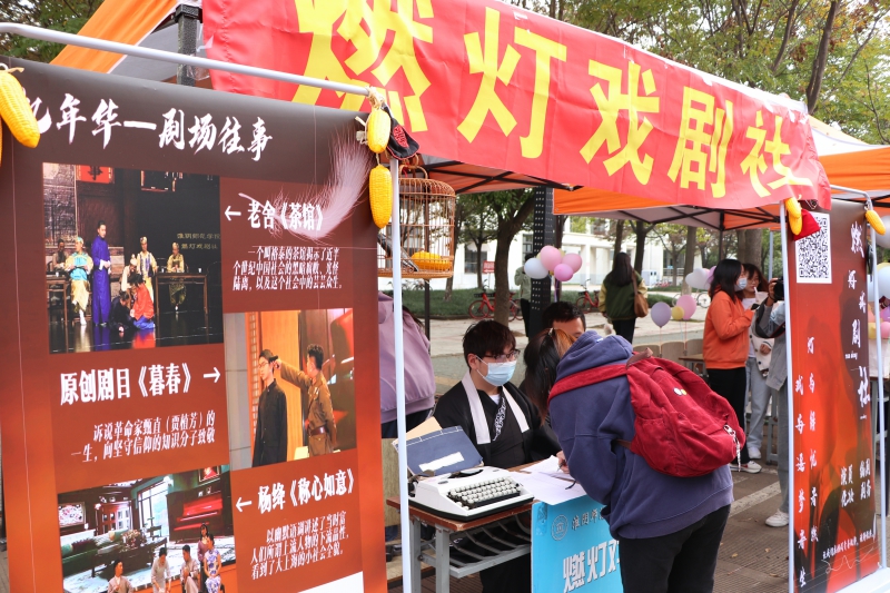 千帆竞发,青春远航。各学生社团用横幅标语和独具社团特色的新颖风格吸引往来人潮。明志青年学习社点燃青春信仰,凝聚青年力量,心怀赤诚,恣意追梦;把握正确方向,深入基层宣讲,大学生蜜蜂志愿微讲团为广大学生提供理论学习平台;以文会友,以友辅仁,相遇在起兮文学社,感受淡淡书香;品味文字奥秘,探寻语言魅力,大学生语言艺术协会传递人文玄妙,承载浪漫;“醉后不知天在水,满船清梦压星河”,天文爱好者协会仰望璀璨星空,探索浩渺宇宙;创客坊群英荟萃,链接未来,各类知识科普和实操展示,精彩纷呈,创意百出;在奉献中收获快乐,在活动中坚持梦想,麦田志愿者协会用执着和坚定的爱与奉献奏响青春的赞歌。