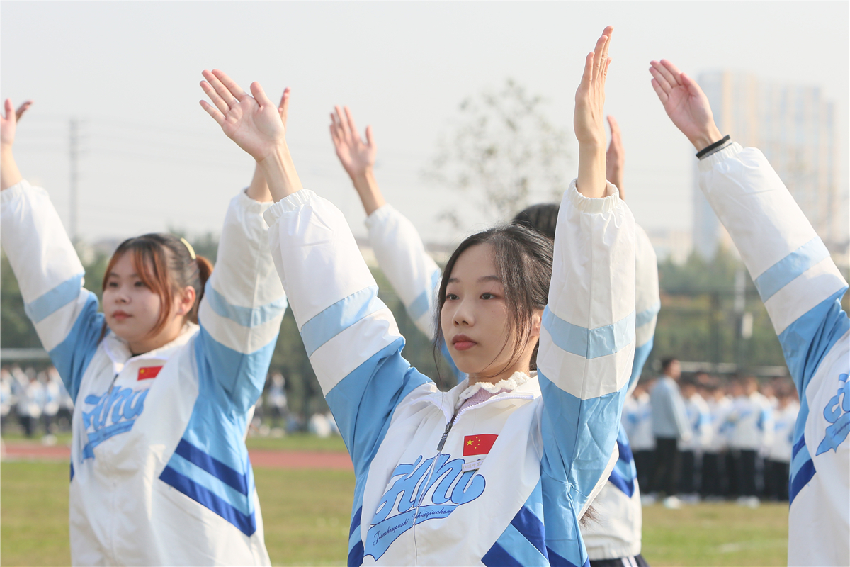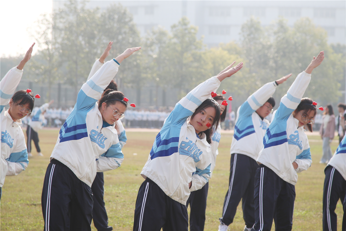 比赛中,各班级服装统一、步伐整齐、口号洪亮,同学们精神饱满、意气昂扬,动作娴熟到位,张弛有度,充分展现青年学生拼搏进取、团结一致的良好精神面貌和青春活力。