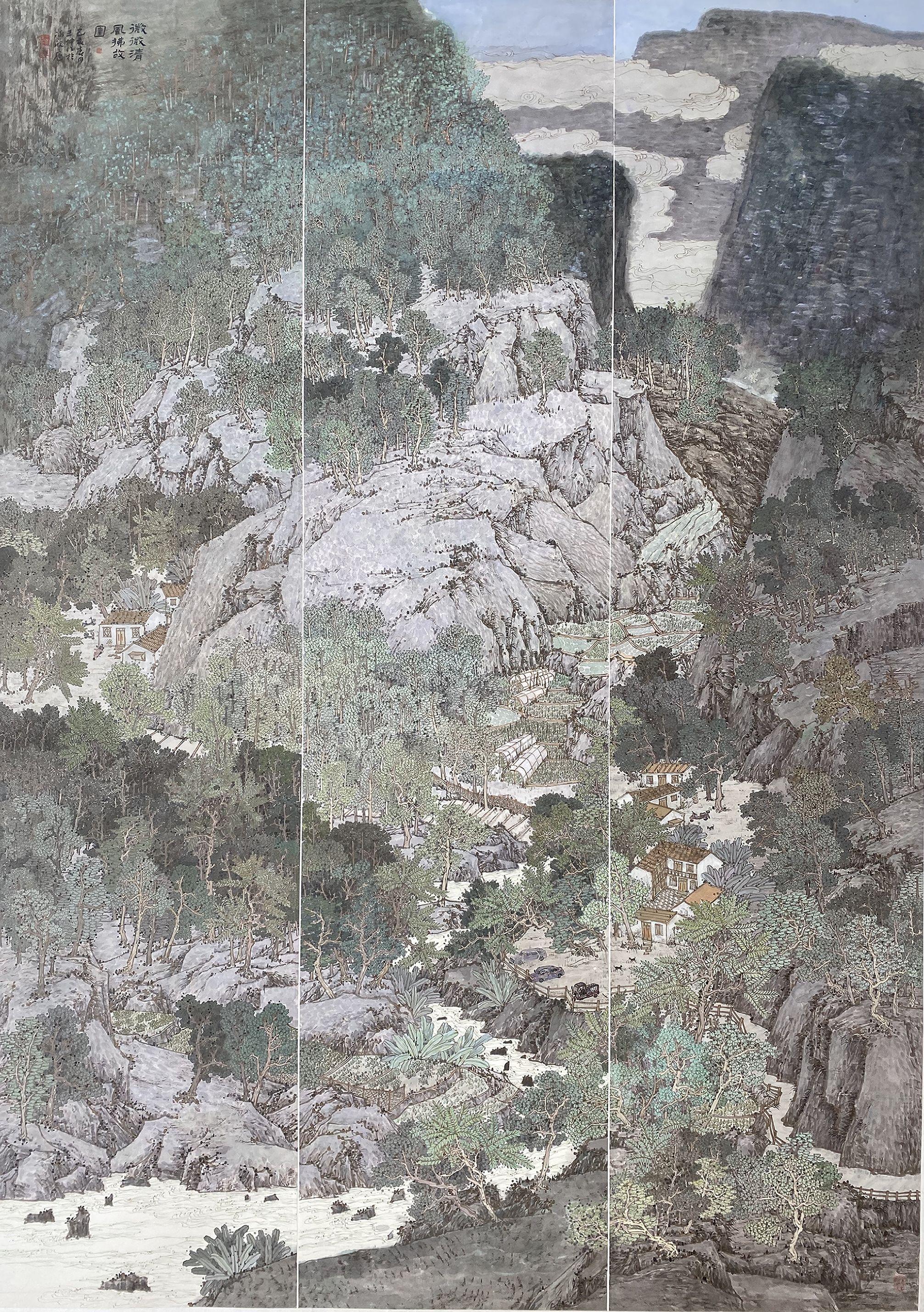 图为王坤老师入选作品《微微清风拂故园》