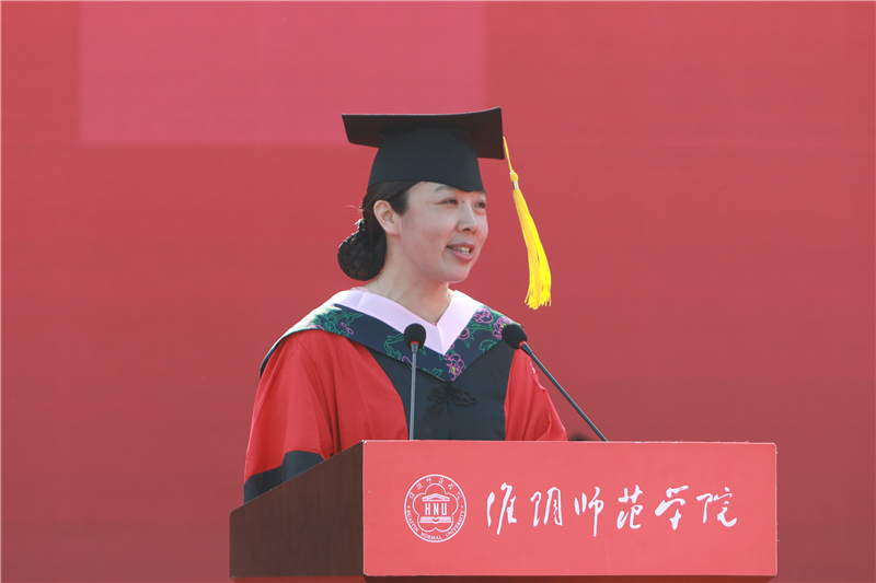 校友代表、佳一教育集团创始人、董事长王晓兵回忆淮师生活,感恩母校培养,勉励学弟学妹们要树立终身学习的理念;教师代表、文学院院长许芳红教授为毕业生送上临行嘱托与真挚祝福,言之殷殷,情之切切;家长代表、物电学院侯睿媛同学家长侯宽恩先生对淮师能够为社会培养出众多优秀人才表示诚挚感谢;优秀毕业生代表、马克思主义学院钱嘉怡代表2021届毕业生深情告白母校,祝愿母校桃李芬芳。