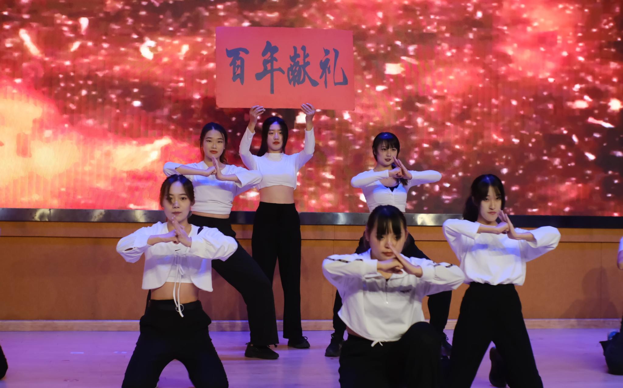 古筝独奏《井冈山上太阳红》琴弦轻拨,琴音袅袅;一曲悠扬,回味无穷。听觉盛宴,带着观众走进古典音乐,共同传承华夏文化。舞蹈《朱雀》舞台上的他们魅力四射,舞台下的观众热情打call。歌曲《卸妆》、舞蹈串烧 《舞动青春》展示当代大学生青春的活力四射、甜美璀璨。一首《赞赞新时代》将晚会推向高潮,舞台上的少年们用清澈的歌喉深情歌唱对祖国新时代的赞美之情。每一次树立起的大拇指,每一下挥舞的旗帜,都是对祖国最强有力的盛赞。