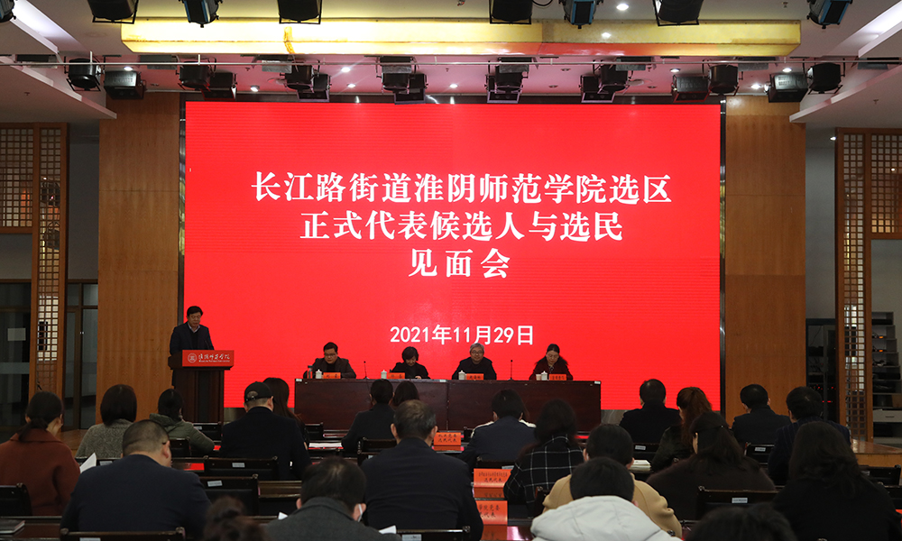 淮师新闻网11月30日电(记者 苗玮)11月29日下午,长江路街道万象城awcsport官网选区正式代表候选人与选民见面会在淮师图书馆多功能厅举行。选区选举工作小组组长柏璐、副组长刘永红以及万象城awcsport官网选区选民代表参加会议。校党委组织部部长闫超栋主持见面会。