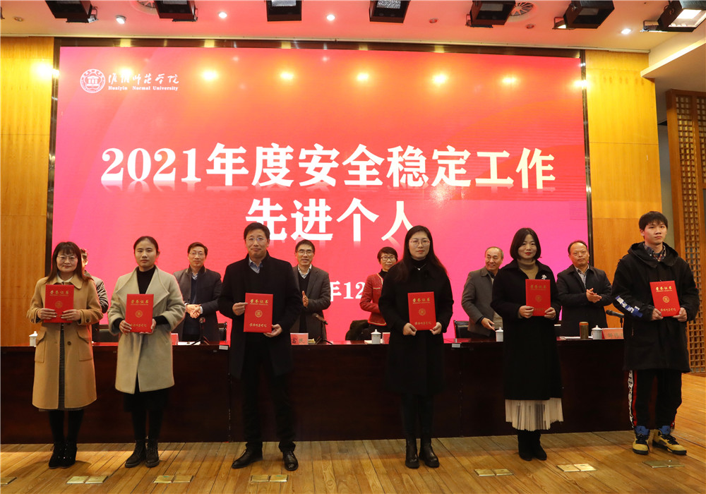焦富民代表学校向受表彰的单位和个人表示热烈祝贺,向一直以来兢兢业业为学校安全稳定工作做出贡献的师生员工表示衷心感谢。他指出,2021年,学校以校园安全稳定为目标,以“省教育系统安全专项整治三年行动方案”为抓手,形成了“全员参与、全面防控、全程留痕、全时督查”的安全发展新态势;2022年,我们要站在全新起点,以更高标准、更严要求、更实作风、更大作为,全面推进 “高质量平安校园建设高校”创建活动。