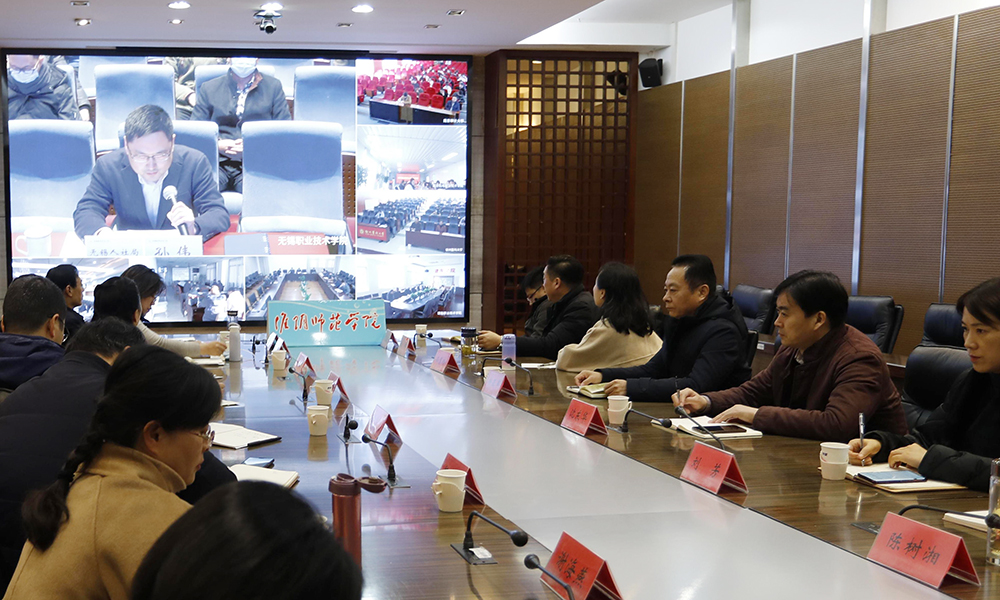图为淮师组织参加全省高校毕业生就业创业工作网络视频会议。记者 刘辰昕 摄