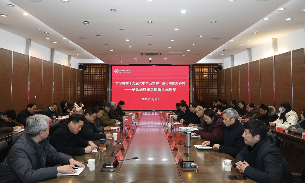 图为淮师举行“学习贯彻党的十九届六中全会精神 深化周恩来研究”座谈会。记者 唐瑀 摄