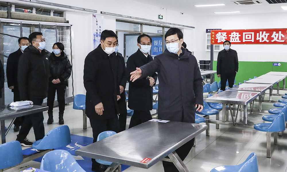 图为市委书记陈之常来淮师检查疫情防控工作。记者 赵启瑞 摄