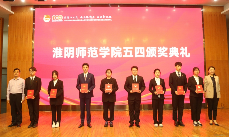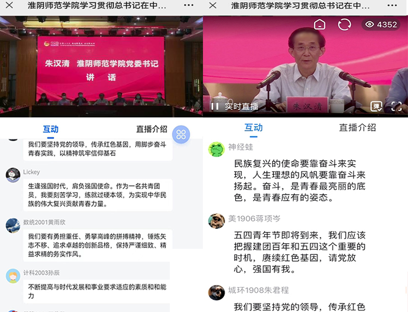 活动现场播放共青团主题教育实践活动风采展示视频《光荣啊,中国共青团》和2021年淮师共青团工作回顾视频,展现淮师共青团组织和青年学生奋勇向前的坚定信念,以及昂扬向上的青春朝气。