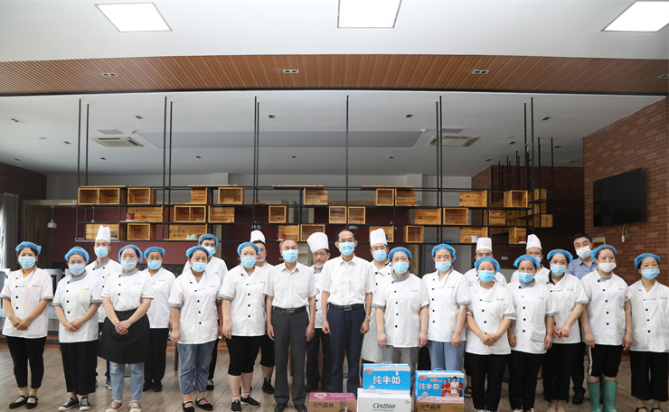 校办、工会、后勤管理处、保卫处、后勤服务集团主要负责人陪同慰问。