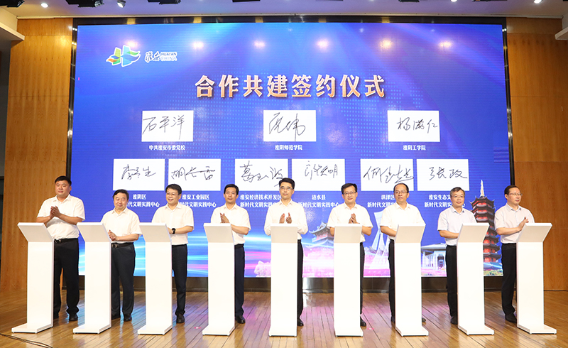 大会举行了合作共建签约仪式。万象城awcsport官网、淮阴工学院、中共淮安市委党校与淮安经济技术开发区、淮阴区、洪泽区、涟水县、淮安工业园区、淮安生态文旅区新时代文明实践中心签署了合作共建协议;江苏电子信息职业学院、江苏食品药品职业技术学院、江苏财经职业技术学院、江苏护理职业学院与清江浦区、淮安区、盱眙县、金湖县新时代文明实践中心签署了合作共建协议。