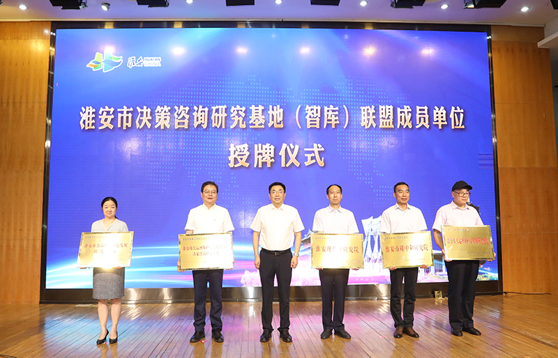 张新科为淮安市决策咨询研究基地(智库)联盟成员单位授牌。