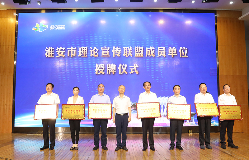 赵金松为淮安市理论宣传联盟成员单位授牌。