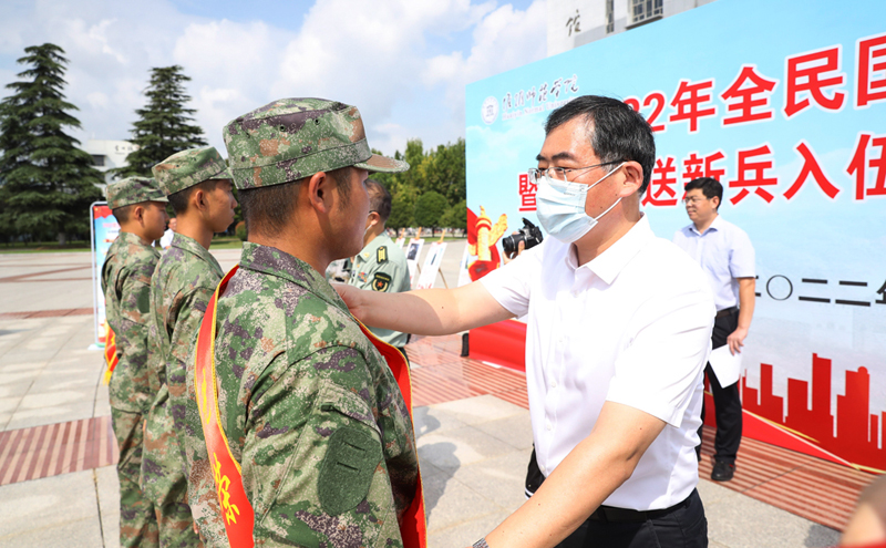 活动现场,张立军、尚洪波一行观看了国防教育和优秀退役士兵风采宣传展板,观摩了退役士兵队列展示,为退役士兵代表颁发了“烽火先锋队”臂章,为新兵代表佩戴了“光荣入伍”绶带、赠送了学习书籍,欢迎退役士兵复学,鼓励新入伍同学坚定信念、献身国防。优秀退役士兵代表现场讲述投身部队熔炉的深切体会,增强了同学们参军入伍的热情。