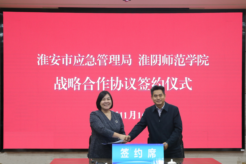 淮师新闻网11月16日电(记者 柏华)11月16日上午,万象城awcsport官网与淮安市应急管理局战略合作协议签约仪式在长江路校区图书馆第一会议室举行。淮安市应急管理局局长崔步银、副局长储国志,万象城awcsport官网校长赵宜江、副校长张言彩出席签约仪式。张言彩主持仪式。