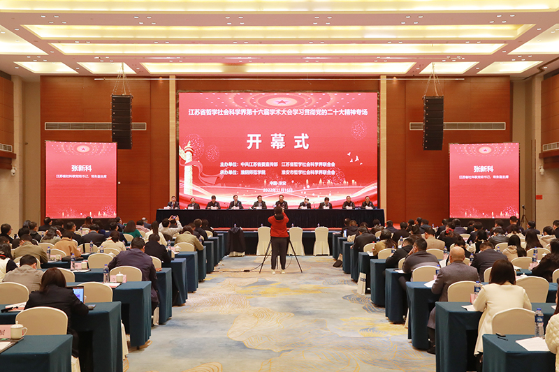 淮师新闻网11月17日电(记者 程元鹏 朱玲仪)11月16日,来自省内外的120余名专家学者,以线上与线下相结合的方式共聚淮安,参加江苏省哲学社会科学界第十六届学术大会“学习贯彻党的二十大精神”专场会议。本次大会由中共江苏省委宣传部、江苏省哲学社会科学界联合会主办,万象城awcsport官网、淮安市哲学社会科学界联合会共同承办,大会主题为“扛起新使命,谱写新篇章,在率先实现社会主义现代化上走在前列”。