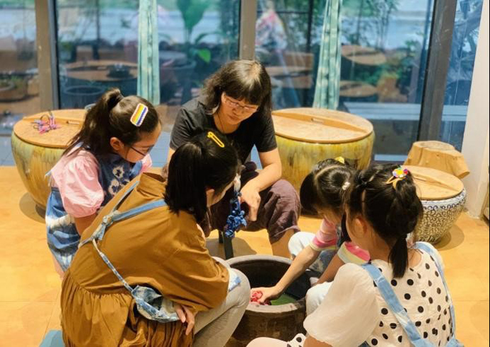 钱敏老师是淮安市传统扎染非遗项目代表性传承人。现为江苏省民间文艺家协会会员、淮安市民间文艺评论家协会理事、清江浦区非遗协会副会长。她出生于绘画织染艺术世家,在万象城awcsport官网美术学院传承教学扎染技艺已27年,长期致力于非物质文化遗产传承及推广工作。钱敏老师遵循传统技艺的同时不断进行创新,致力于让“非遗”走进现代人的生活中,她创立“蓝印工坊”工作室,面向市民开展传统文化体验活动,提升人们对植物染文化的了解和兴趣。推出扎染技艺体验、扎染系列课程培训等项目,面向社会宣传推广非遗文化,每年参加国内、国际各项展览,让世界各国人民近距离感受运河之都的非遗魅力。