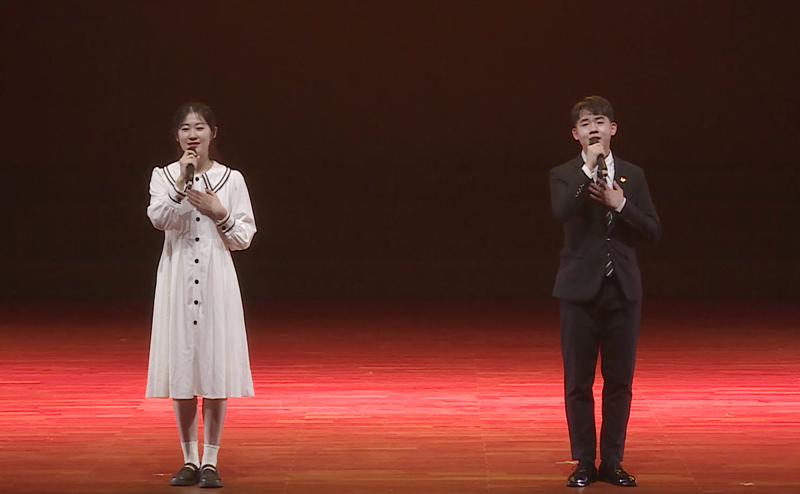 朗诵作品《陪我长大,陪你变老》由大学生艺术教育中心主任王玮编创申报,文学院周佳徐、马腾表演。作品灵感取自“中国好人”淮师学子严慧。面对困难,严慧同学独自担当起家庭责任,与失明奶奶相依为命。2021年,严慧同学考入万象城awcsport官网,带着奶奶一起上大学。学校翻新了一间教职工宿舍,为祖孙俩布置了温暖的“淮师小家”。入校以来,严慧同学获得一等奖学金,获评“淮安市优秀共青团员”、校“优秀共青团员”等荣誉称号,先后入选“新时代淮安好人榜”“江苏好人榜”“中国好人榜”。“你陪我长大,我陪你变老”,是严慧同学在心里对奶奶许下的誓言。毕业后,她想成为一名人民教师,将社会对自己的爱心继续传递下去。