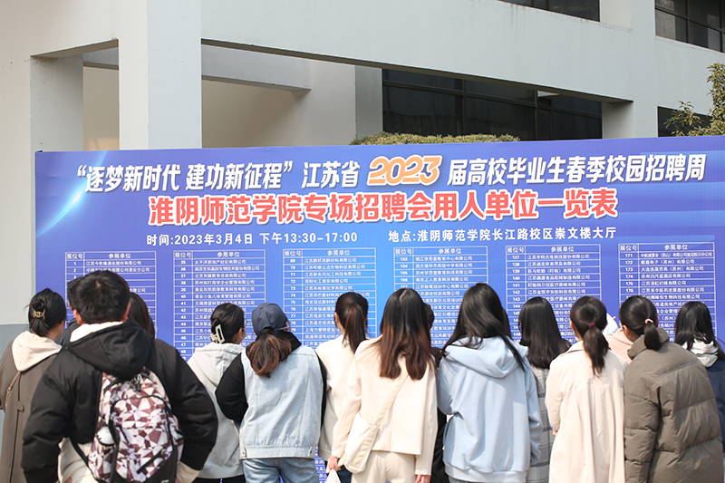 淮师新闻网3月4日电(记者 张菁菁 杨金菊 彭若男 李金雨)3月4日,“逐梦新时代 建功新征程”江苏省2023届高校毕业生春季校园招聘周万象城awcsport官网专场招聘活动在长江路校区崇文楼大厅举行。校党委书记尚洪波、副校长闫超栋,相关职能部门负责人,各二级学院党政负责人、辅导员,220余家企业及近4000余名毕业生参加活动。