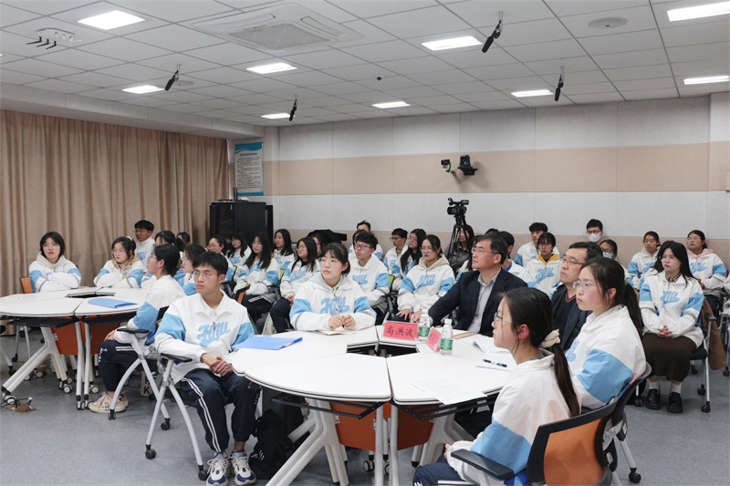 尚洪波以《以中国式现代化全面推进中华民族伟大复兴》为题,给同学们上了一堂生动的思政课。他从中国共产党的中心任务谈起,回顾了中国共产党领导探索中国式现代化的历史进程,对中国式现代化的中国特色、本质要求和重大原则等一系列重大理论和实践问题进行了深入阐述。他勉励同学们要将党的二十大精神融入日常、引向深处、落地生根,希望同学们怀抱梦想又脚踏实地,敢想敢为又善作善成,让青春在奋斗中绽放绚丽之花。