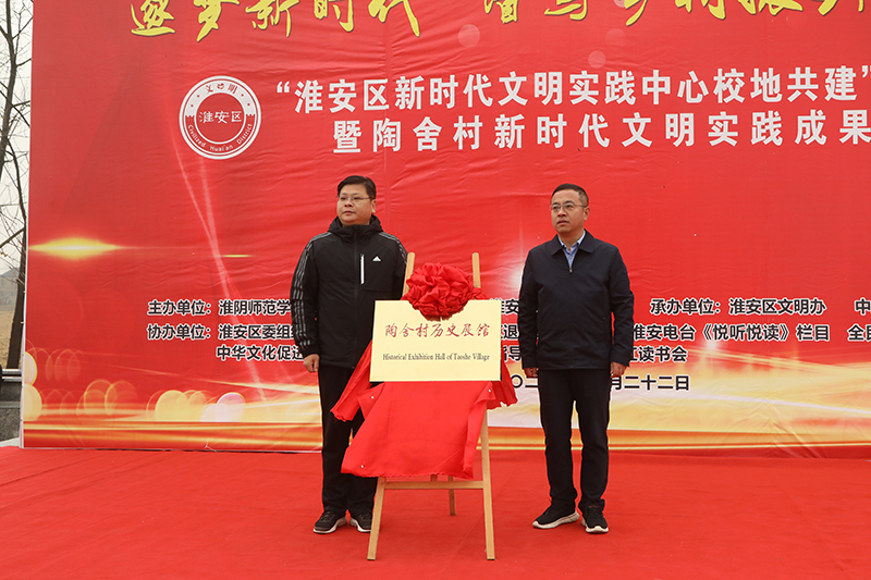 与会领导分别为陶舍村新时代文明实践站、陶舍村新时代广场、陶舍村红色村史馆、陶舍村农业科普基地揭牌。