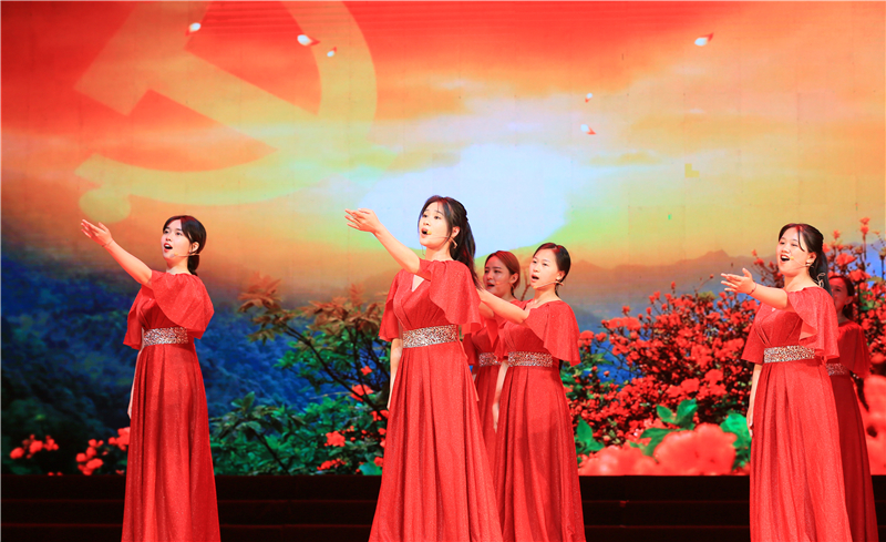 悠悠赞党歌,昭昭赤子心。一曲经典红歌《南湖的船,党的摇篮》拉开晚会序幕。四位主持人为大家带来感人肺腑、铿锵有力的诗朗诵《红旗颂》,追溯中华民族伟大奋斗历程的过程中生生不息的发展力量,感染着每一位观众。百年恰似风华正茂,正值党的百年诞辰,《唱支山歌给党听》《你是这样的人》《党啊,亲爱的妈妈》饱含热忱之心,高亢嘹亮,斗志昂扬,唱响爱国爱党之心。