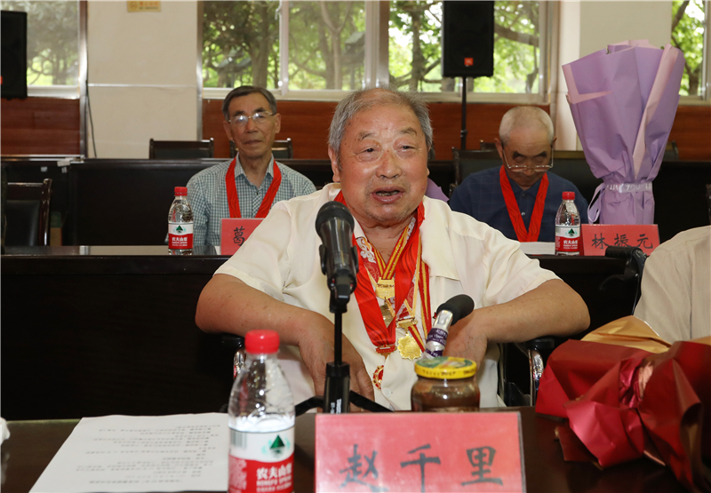 今年92岁的老党员赵千里,已有74年党龄,在仪式现场作题为《党恩永不忘,终生跟党走》的发言,分享了自己革命、学习和工作经历,激励年轻党员坚定不移跟党走,为党的事业贡献力量。教师党员代表刘蒙、学生党员代表蒋俊慧分别就自己的工作、学习情况作交流发言。