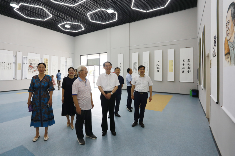 揭牌仪式后,大家观看了“奋斗百年路∙启航新征程——庆祝建党100周年教职工书画作品展”。本次展览的作品涉及书法、国画、剪纸和招贴画等艺术形式,其中既有学校书画名家匠心独具的精品力作,更有全校教职工爱党爱国爱校情怀的生动呈现。