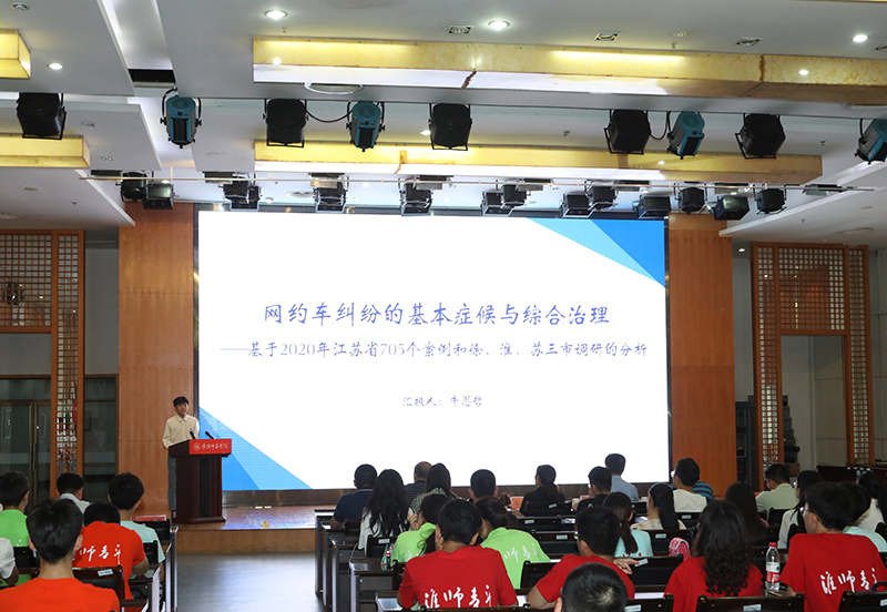 历史学院《护苗计划——“打通最后一米”社工服务项目调研》和法政学院《网约车纠纷的基本症候与综合治理——基于2020年江苏省705个案例和徐、淮、苏三市调研的分析》项目负责人进行实践汇报展示。学院代表、教科院党委副书记滕祥,指导教师代表、文学院刘志刚,实践团成员代表、数统学院王喆琪分别作表态发言。