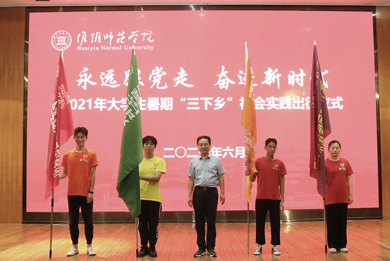 杨亚军指出,今年是中国共产党成立100周年,也是“十四五”规划实施的开局之年,各实践团队要在社会实践的过程中多深入基层一线,多走到群众身边,通过身边鲜活的事例、生动的故事,更加准确地了解党情、国情、社情、民情,上好与现实相结合的“大思政课”,在观察实践中学党史、强信念、跟党走,用心感受党带领广大人民群众创造的丰功伟绩、取得的伟大成就,树立为祖国为人民永久奋斗、赤诚奉献的坚定理想。他希望参与社会实践的同学们要践行初心使命,在传承理想中坚定信念;珍惜时代机遇,在拼搏实干中增长才干;注重真抓实干,在树好形象中收获口碑。杨亚军强调,各有关部门要进一步加强精准指导,积极整合线上线下各类资源,为学生提供实实在在的支持和服务;进一步严守风险底线,把师生身体健康和生命安全放在第一位,全面做好疫情防控各项措施,依法依纪依规组织各项实践活动;进一步做好宣传引导,及时挖掘活动中涌现出来的好做法、好典型、好经验,在社会实践中弘扬好“淮师精神”,讲好“淮师故事”,传递好“淮师力量”。