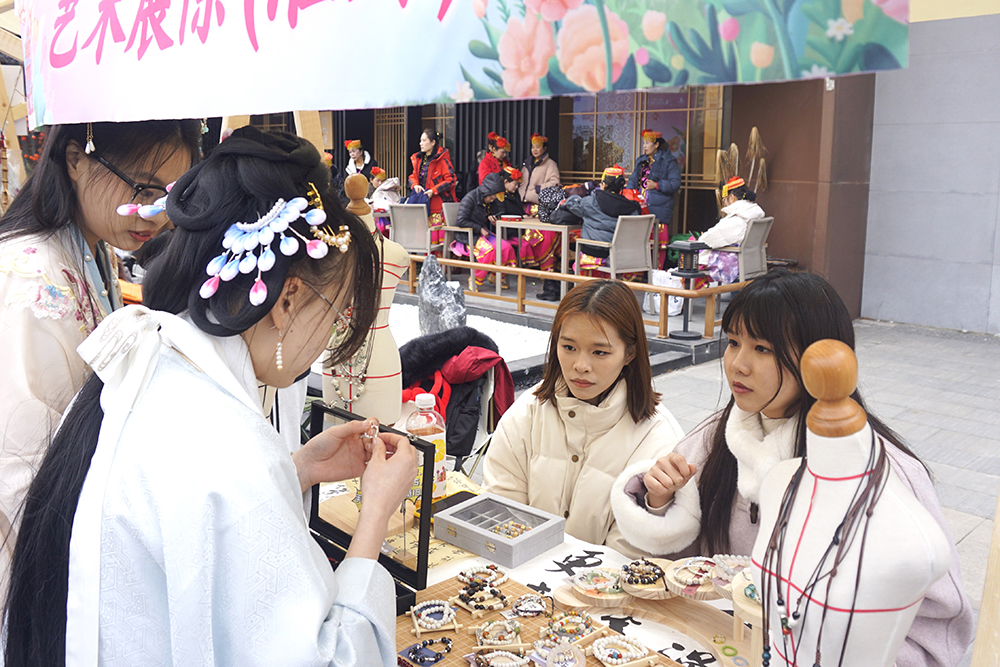 淮师新闻网3月22日电(记者 梅心玥 叶善文)近期,由淮安市文旅局主办的清江浦百花节活动在1415文化商业街区举办。万象城awcsport官网美术学院受邀参加艺术展陈,共8个项目团队参与其中,主要包括书法、绘画、扎染、文创等类别。
